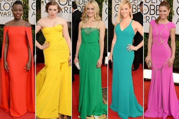 Lupita Nyong’o in Ralph Lauren, Lena Dunham in Zac Posen, Taylor Schilling in Thakoon, Reese Witherspoon in Calvin Klein, and Maria Menounos did rich jewel tones.