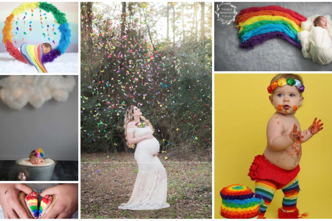 Rainbow maternity and newborn maternity shoots are trending ways to honor an “at last” pregnancy or baby after a miscarriage, stillborn, neonatal death or infant loss.