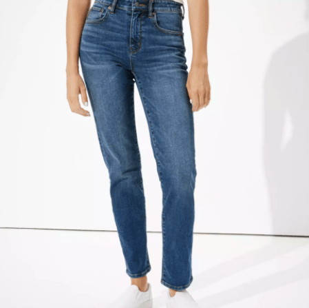 I pair my red boyfriend shirt by American Eagle ($29.99) with my fave denim Mom jeans” ($29.96)  from AE.