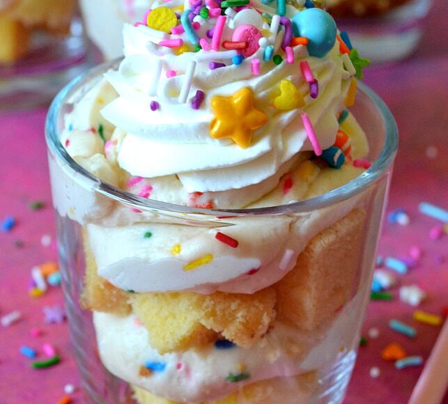For the chocolate lovers, serving chocolate mousse in cute little dessert dishes with sprinkles on top is just the ticket. Use candle numbers and secure them to the serving plate. Arrange the individual dishes around the candles.