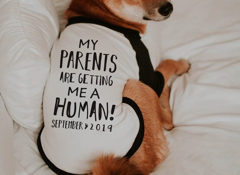 If you have a pet, order a shirt with a pregnancy announcement and outfit fluffly in it so surprise your husband.