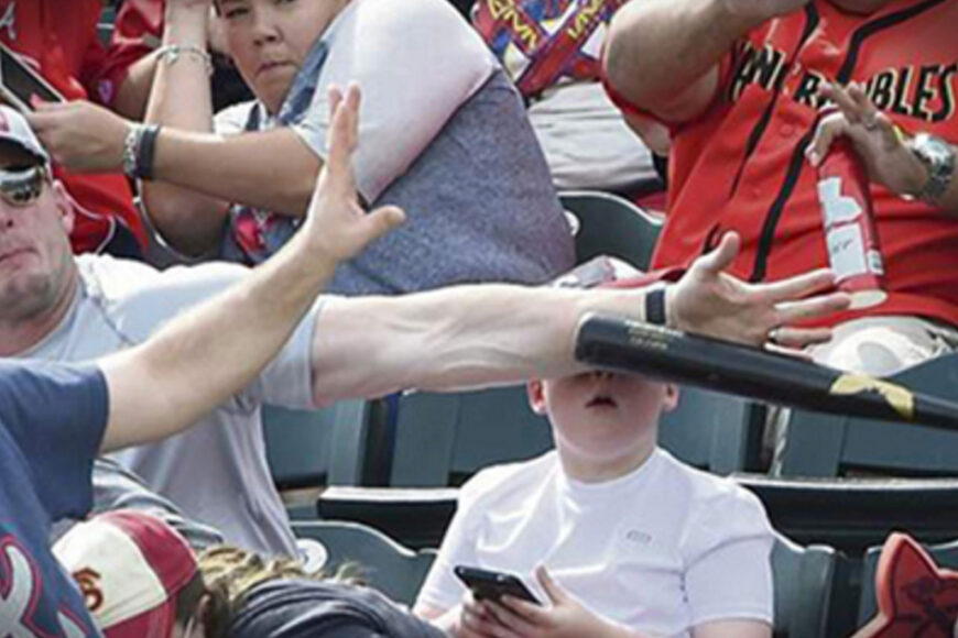 Finally, honorable mention to the dad who saved his son from getting a hit in the face by a flying baseball bat during a March 2016 Pittsburgh Pirates v the Atlanta Braves game.